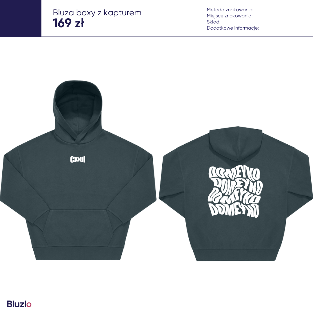 Model ma luźny krój boxy, wszywane rękawy set-in i obszerny kaptur bez sznurka, co nadaje mu minimalistyczny i nowoczesny wygląd. Od wewnątrz bluza została szczotkowana, co zapewnia miękkość i przyjemne ciepło, a materiał jest dodatkowo dekatyzowany, dzięki czemu zachowuje swój kształt i wygląd nawet po wielu praniach.