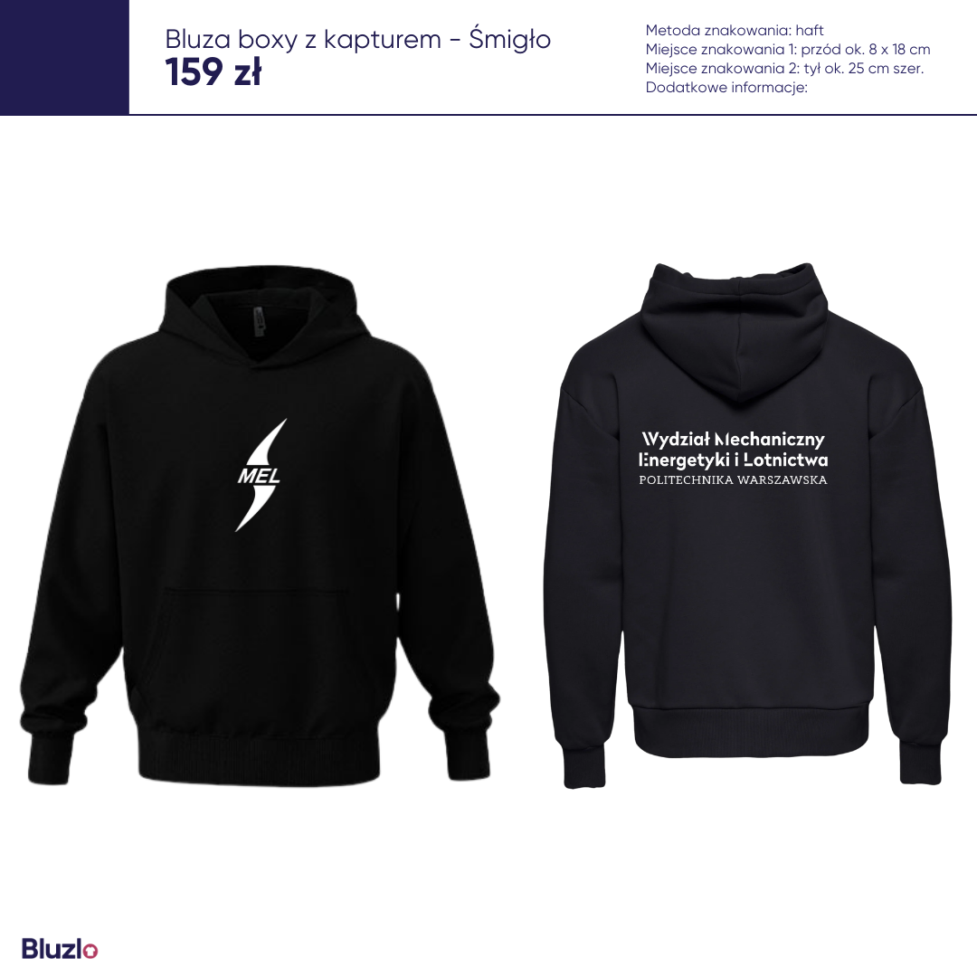 Odzież jest wysyłana w wybrane miejsce wskazane przez osobę odpowiedzialną za organizację merchu. Dalszych informacji o odbiorze należy szukać na portalach społecznościowych wydziału/szkoły, a także na naszym Instagramie @Bluzlo – zapraszamy do obserwowania!